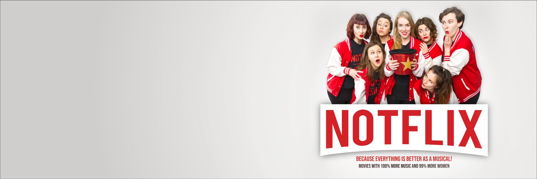 The all-female cast of ‘Notflix’ (otherwise known as ‘Waiting For The Call Improv’) use audience suggestions of recently watched films to create a brand new, fully improvised, one-night-only musical inspired by one audience member’s idea and explanation. Every show is different but what remains is the same joyous, musical celebration of everything you wish a movie could be.